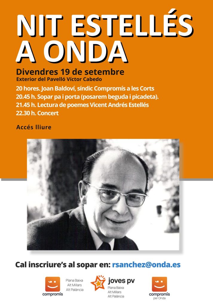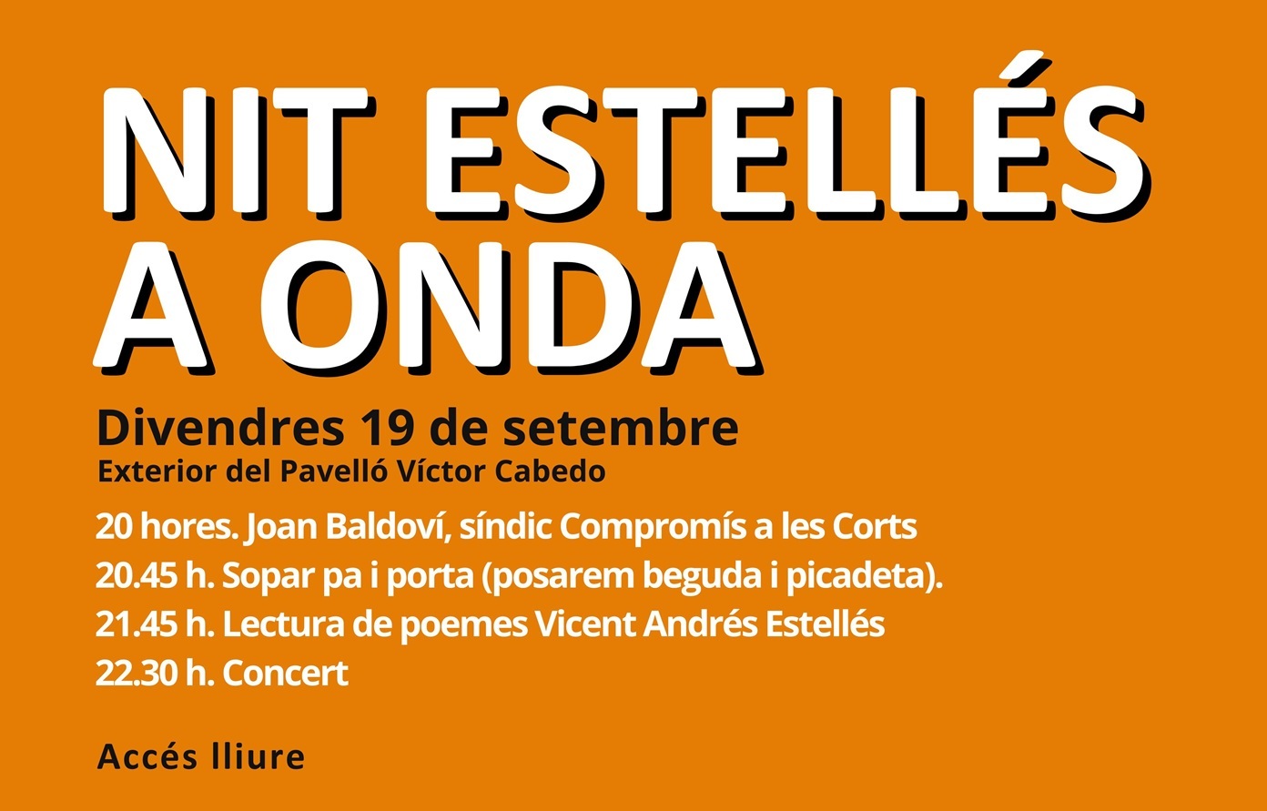 General 5 de setembre de 2025L’acte tindrà lloc a l’exterior del Pavelló Víctor Cabedo i hi haurà un parlament de Joan Baldoví, sopar i lectura de poemes, així com un concert